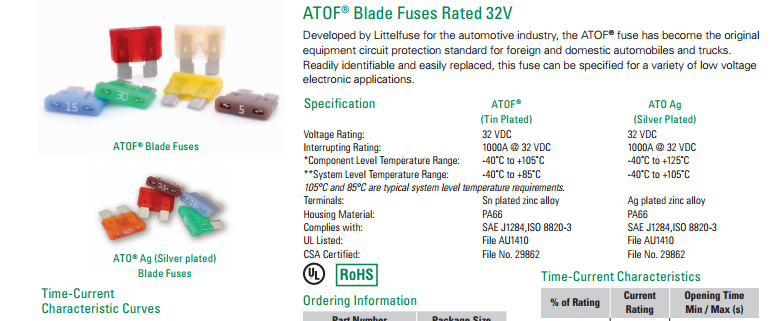 ATOF 32V 系列 - 額定電壓為32V的ATOF插片式保險(xiǎn)絲(取代257 ATO)