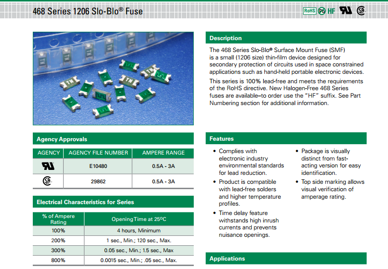 468 系列 - 無鉛SlimLine 1206 Slo-Blo?保險絲