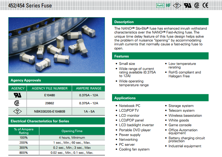 452 系列 - NANO2? Slo-Blo? 超小型表面貼裝保險絲