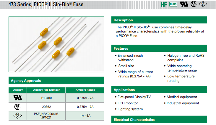 473 系列 - PICO? II Slo-Blo超小型軸向引線式保險絲