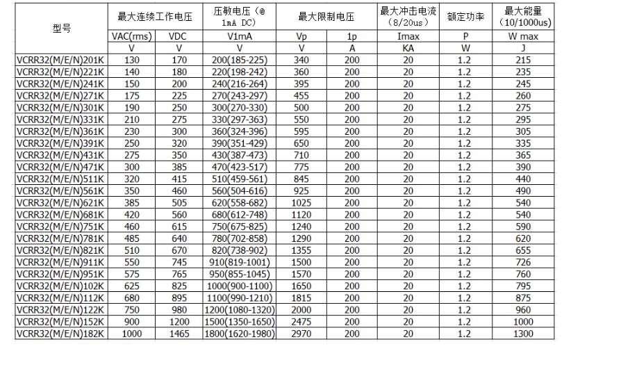 ?壓敏電壓范圍從(200V-1800V) ?符合RoHS,Reach標準,無鉛 ?專利的集成熱保護裝置 - ?旨在促進符合UL1449第3版SPD產品 ?高峰值浪涌電流額定值高達10kA ?波可焊 ?標準引線形式和間距選項 ?低泄漏 ?-55°C至+ 85°C的工作溫度范圍
