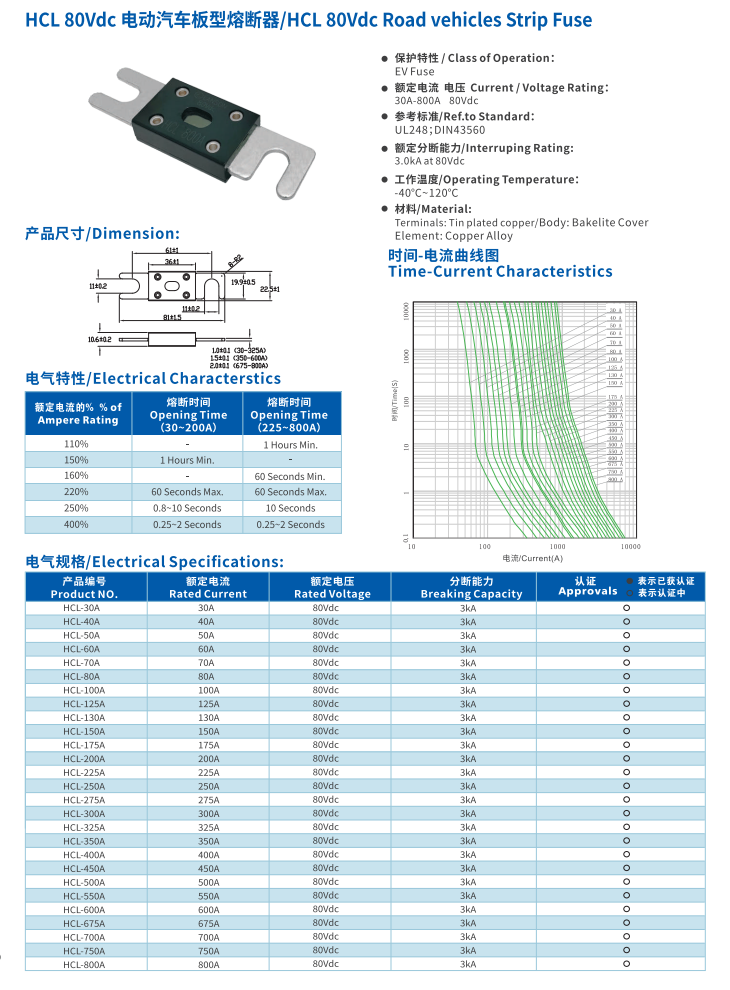 關鍵字:電動汽車板型熔斷器HCL 80VDC Road vehiles Strip Fuse