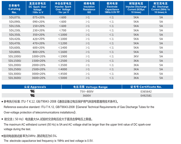 關(guān)鍵字:5DL Φ5.5x6 氣體放電管