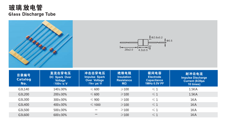 關鍵字:G3L Φ2.6x4.3氣體放電管