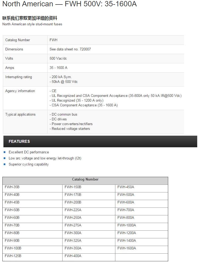 英標BS 88 — 690V: 6-710A快速熔斷器