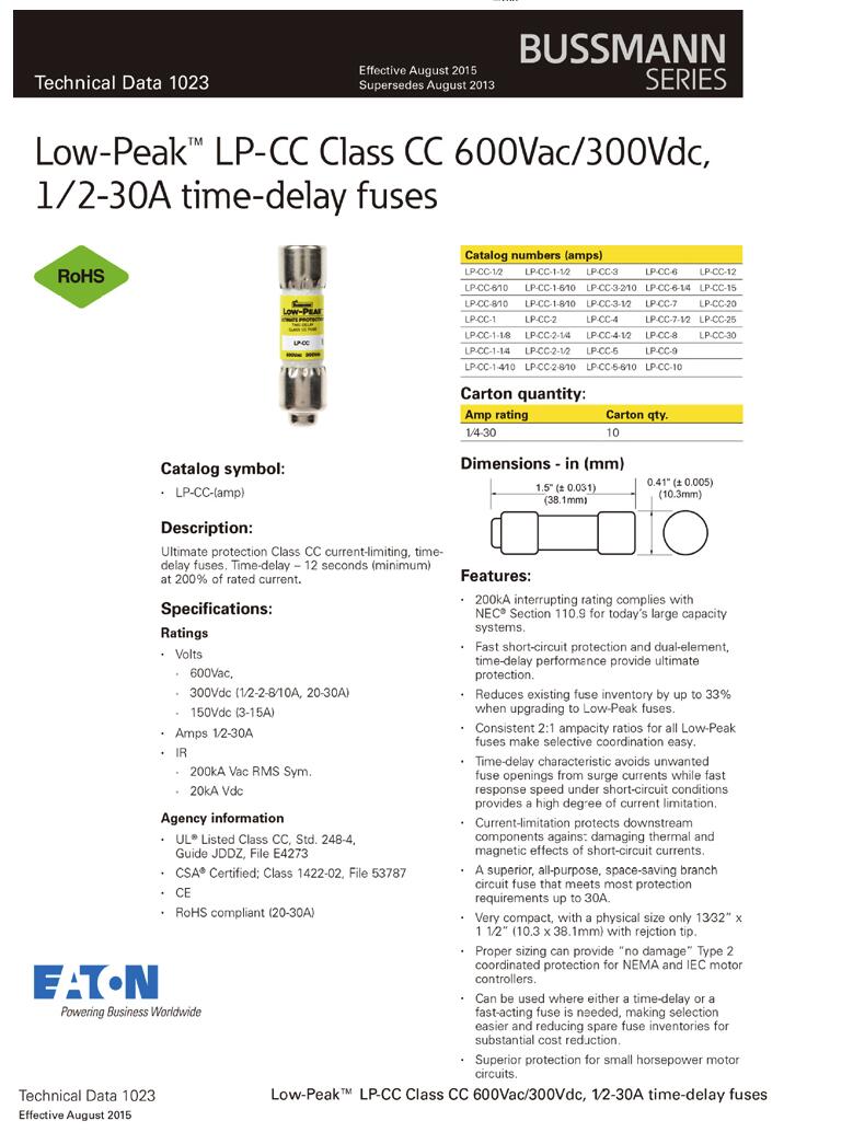 BUSSMANN LP-CC-15 10.338.1mm熔斷器