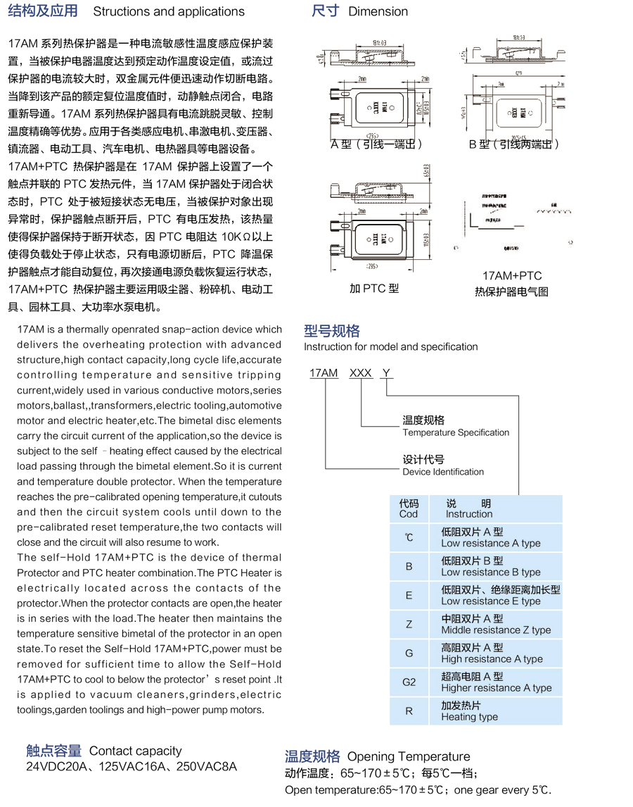 關(guān)鍵字:17AM系溫控器 17AM series thermal protector