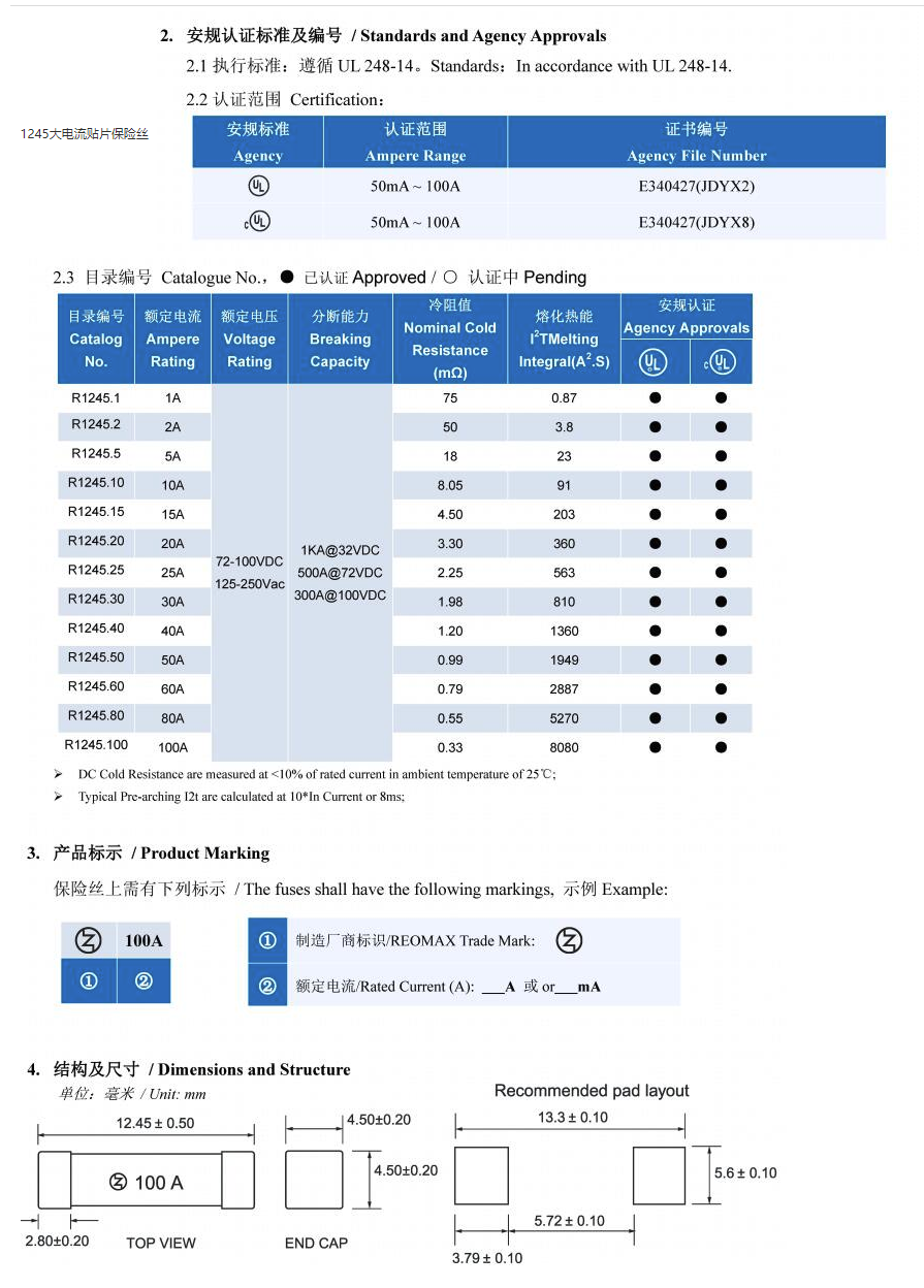 1245大電流貼片保險絲 40A 50A 60A80A 100A貼片保險絲