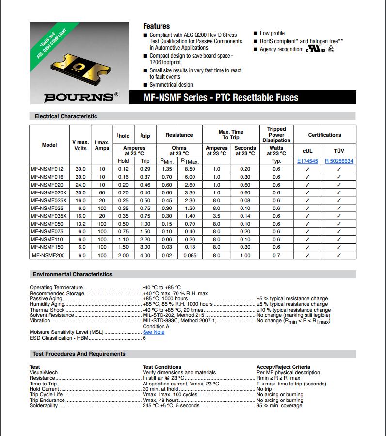 BOURNS 車規保險絲 MF-NSHT AEC-Q200認證