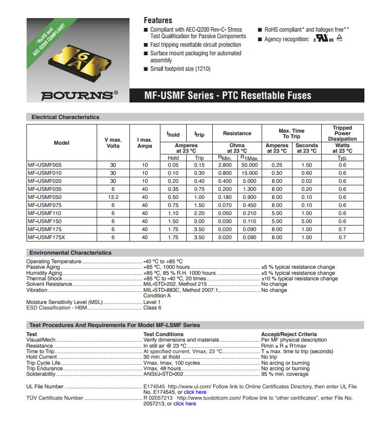 BOURNS 車規保險絲 MF-USHT AEC-Q200認證