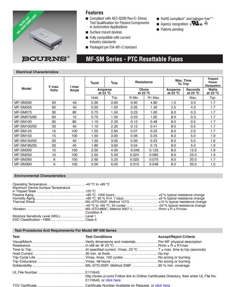 BOURNS 車規保險絲 MF-SM AEC-Q200認證