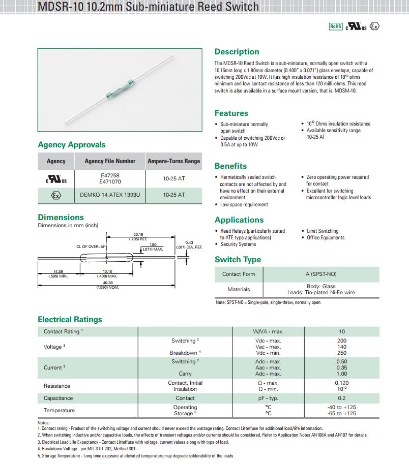關鍵字:磁簧開關|HAMLIN|干簧管