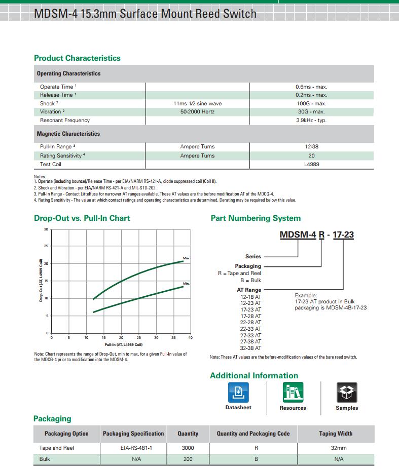 關鍵字:MDSM-4 系列 - 15.3mm表面貼裝磁簧開關|HAMLIN|干簧管