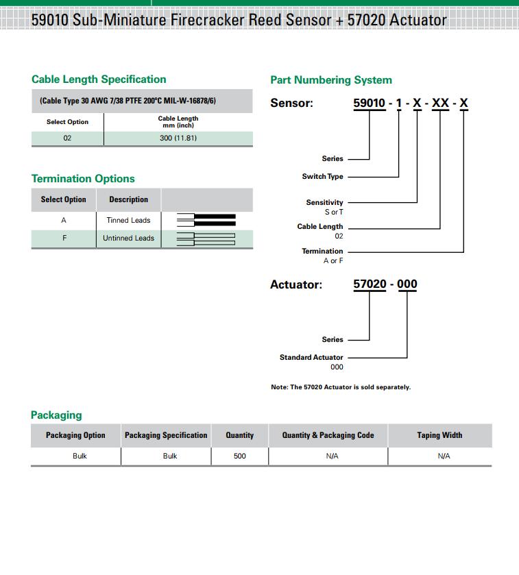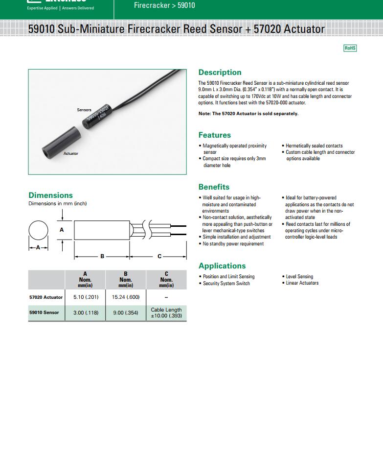 59010 系列 - 超小型Firecracker磁簧傳感器
