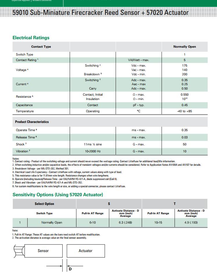 關鍵字:59010 系列 - 超小型Firecracker磁簧傳感器