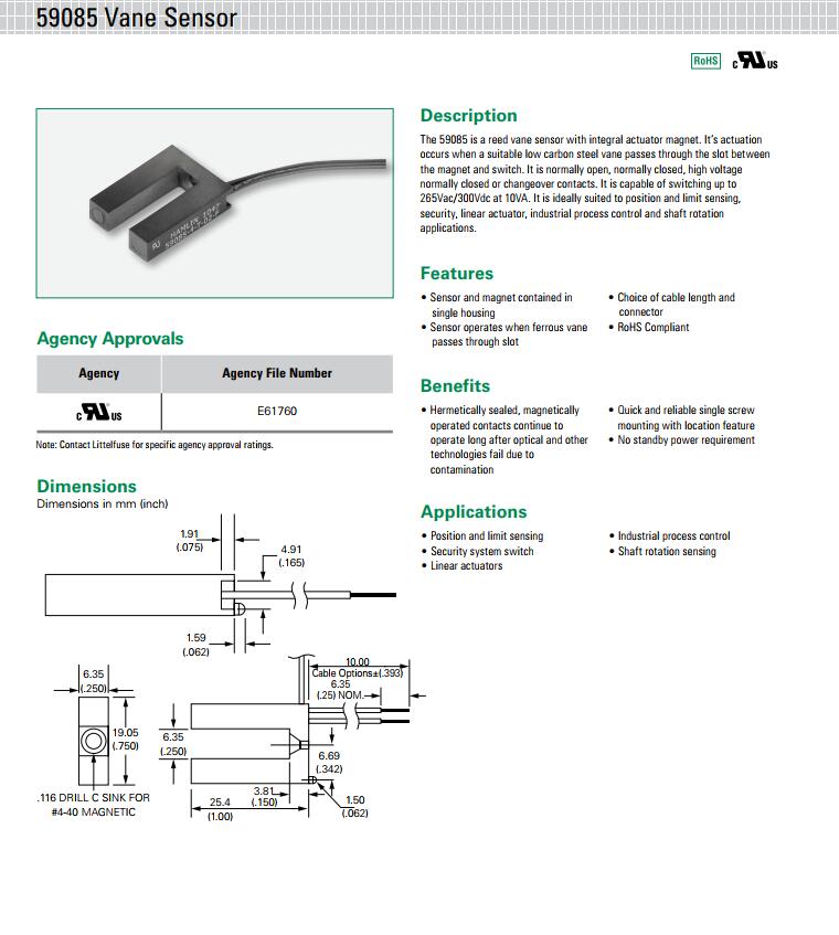 關(guān)鍵字:59085 系列 - 葉片磁簧傳感器