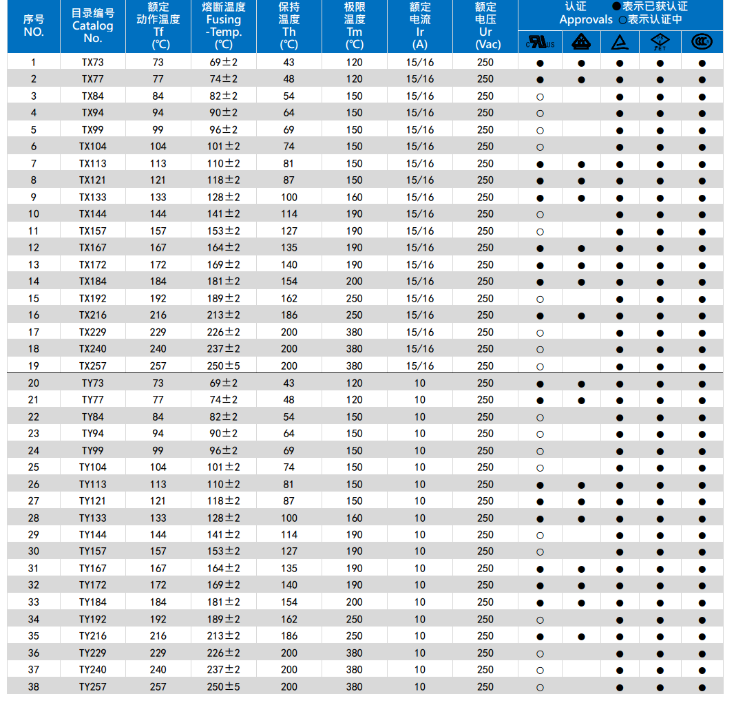 TX/TY 系列 (金屬殼管狀,15A,16A/10A 250V)